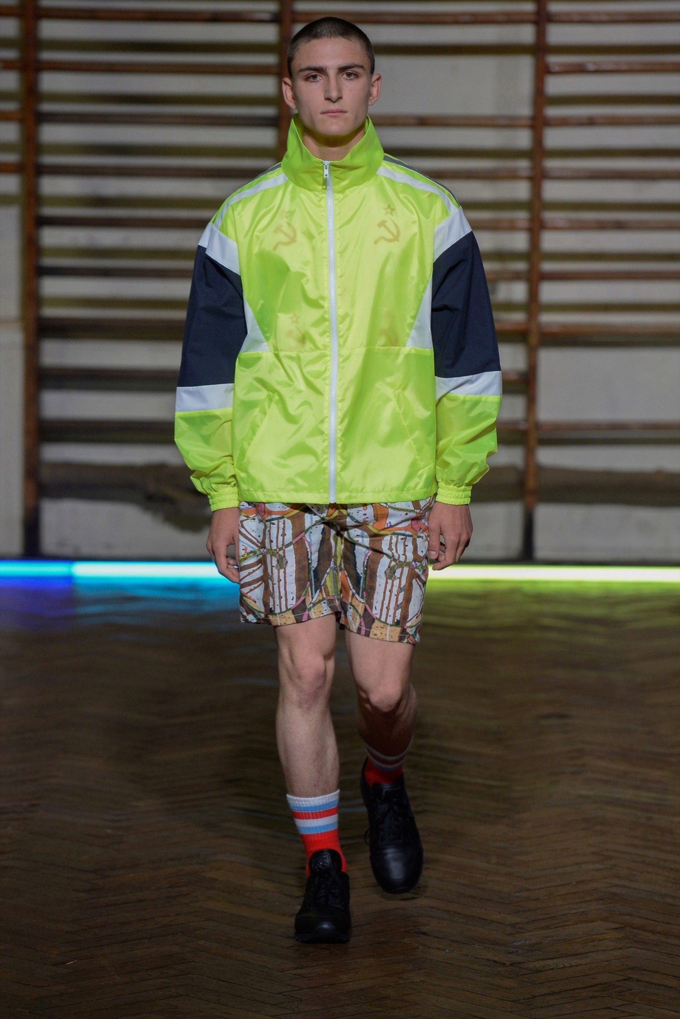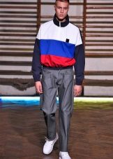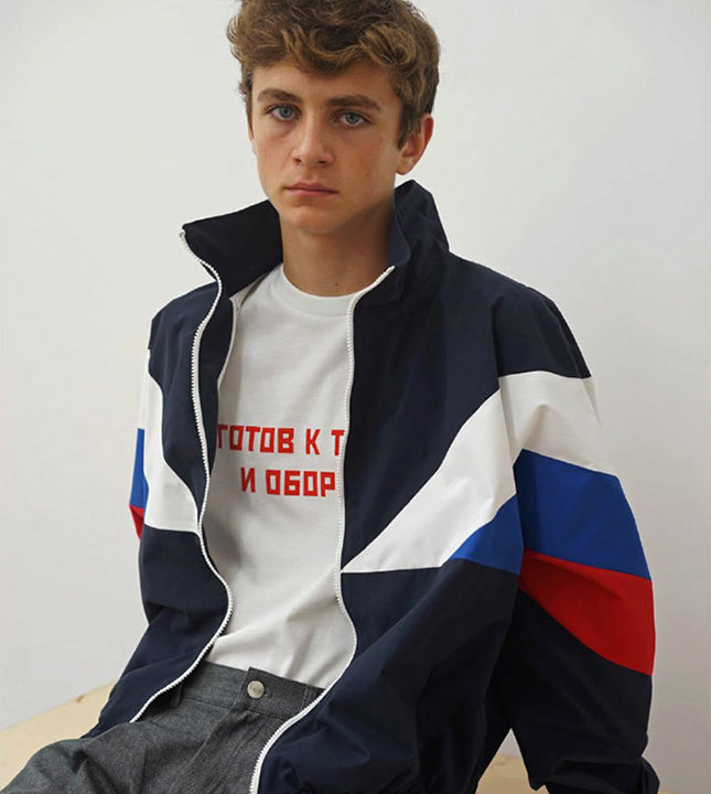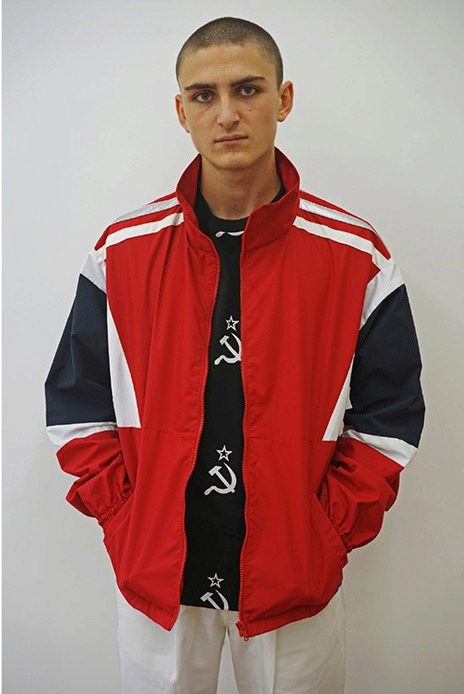 His last collection is called "1984", it is dedicated to George Orwell. All clothes are a "remake" on the sports uniform of Soviet teenagers.
