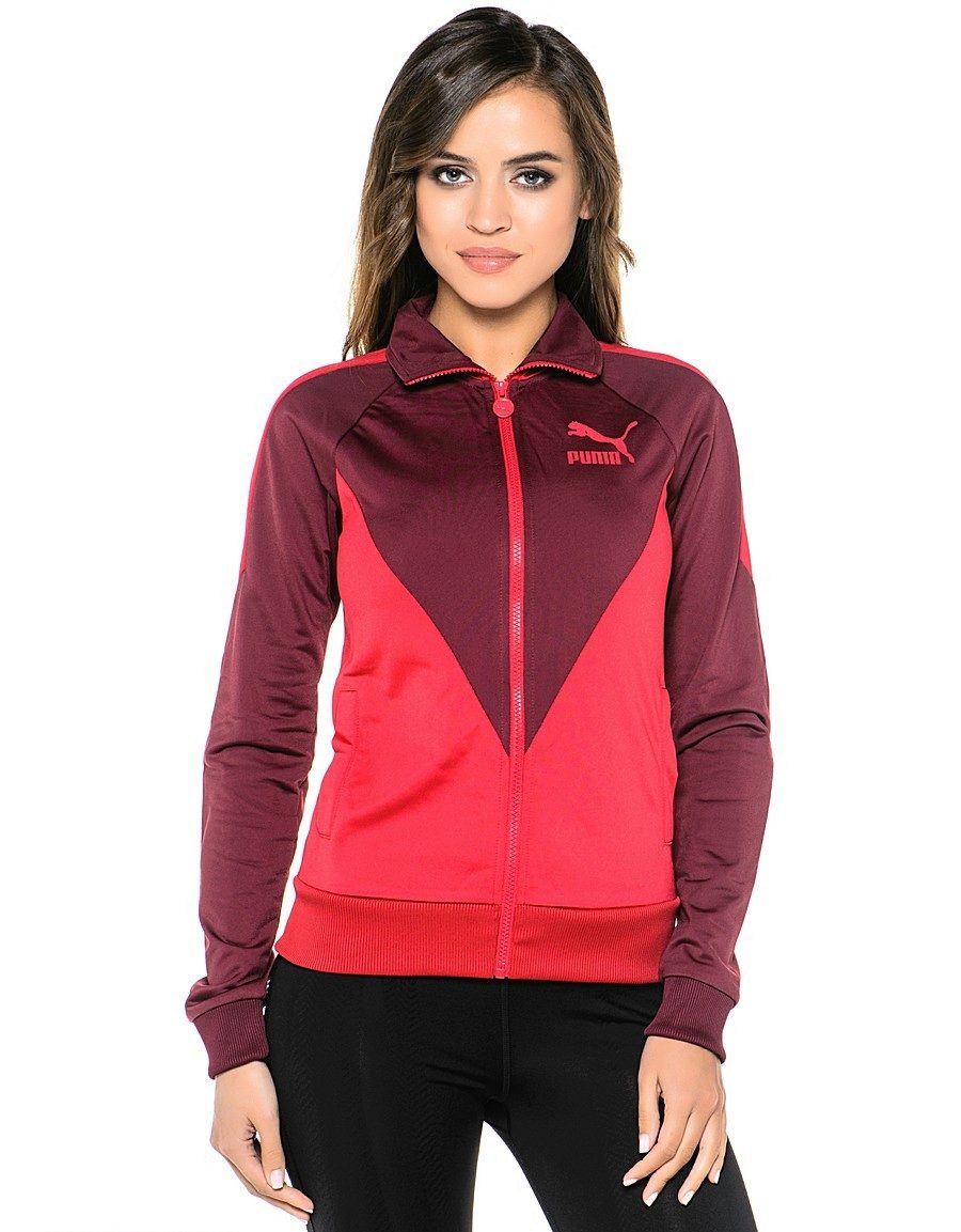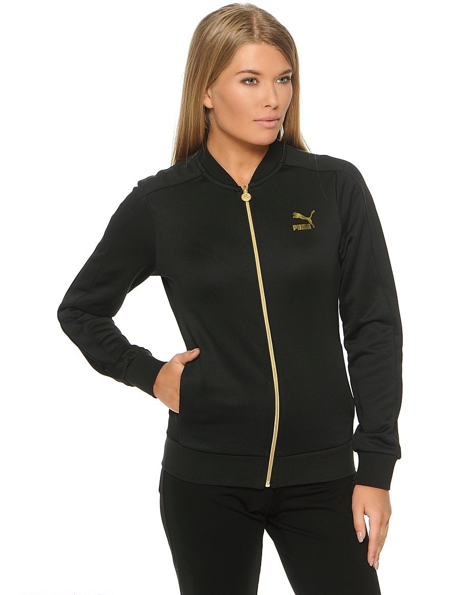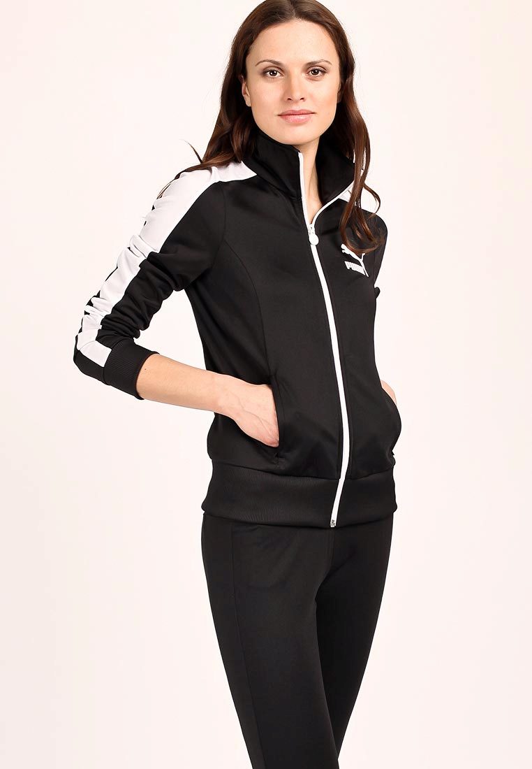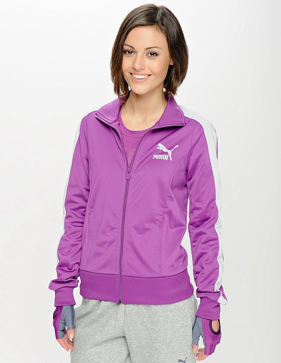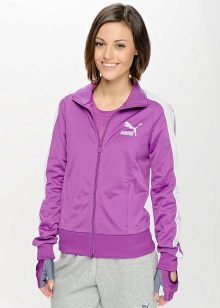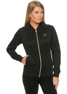 The most famous olympist Puma is more than forty years old. The model is called T7, and to this day it remains one of the most popular and popular. At one time it was worn by rockers, punks, representatives of hip-hop culture. Today, modern dandies and ladies offer to wear Puma sweatshirt with classic trousers, skirts and even dresses.