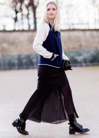 Another trendy trend is a shirt with a romantic skirt to the floor. This combination at first glance seems unexpected, but dressed like that, you will definitely be the most stylish. Be sure to pick up to this side shoes without shoes.