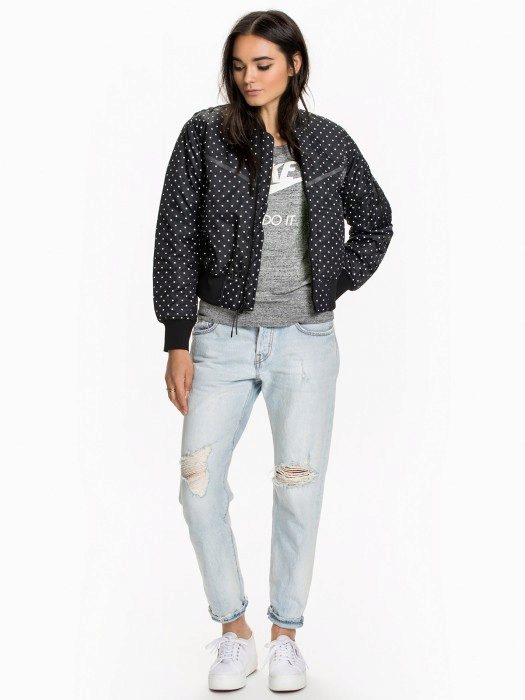 Despite the fact that it is a sports item of clothing, it looks very restrained and stylish. Therefore, you can even combine it with shirts and pants, getting a beautiful look in the style of casual.