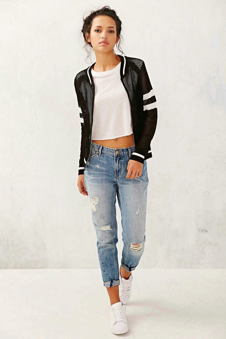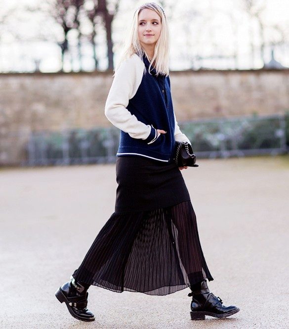 For an oversize vintage sweatshirt, choose skinny jeans that will accentuate your slim legs. Complete the image with ankle boots with heels or lace-up boots.