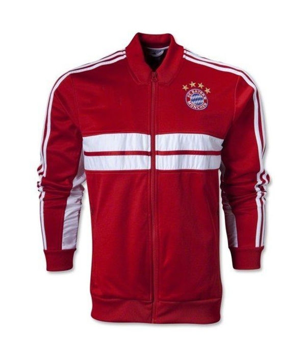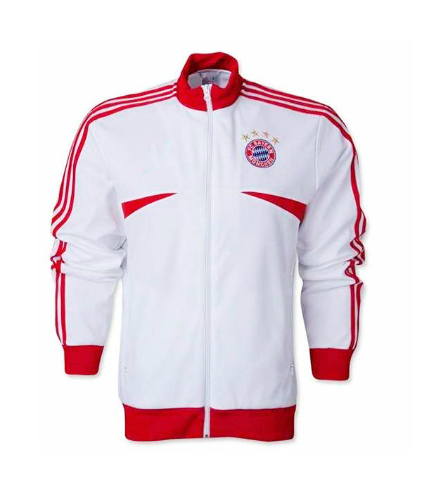 - Bayern Munich. Comfortable olympic shirt, traditionally made in red tones. Complemented with a ruby-colored zip and an embroidered FC Bayern München club logo. Also there are models in white.