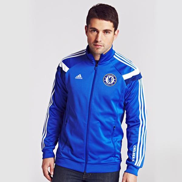 - Chelsea. The blue olympic shirt with the emblem of FC Chelsea will appeal to true fans of this English football club. This is a high-quality and comfortable sports jacket in which you will be warm and comfortable.