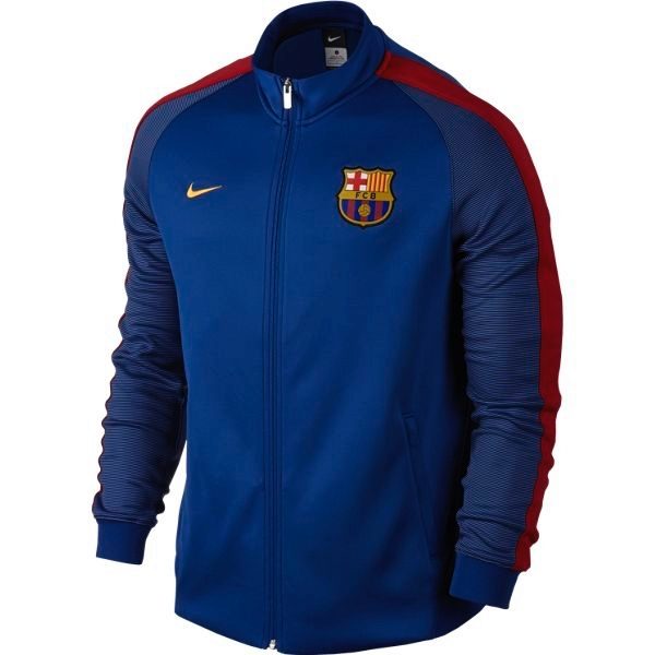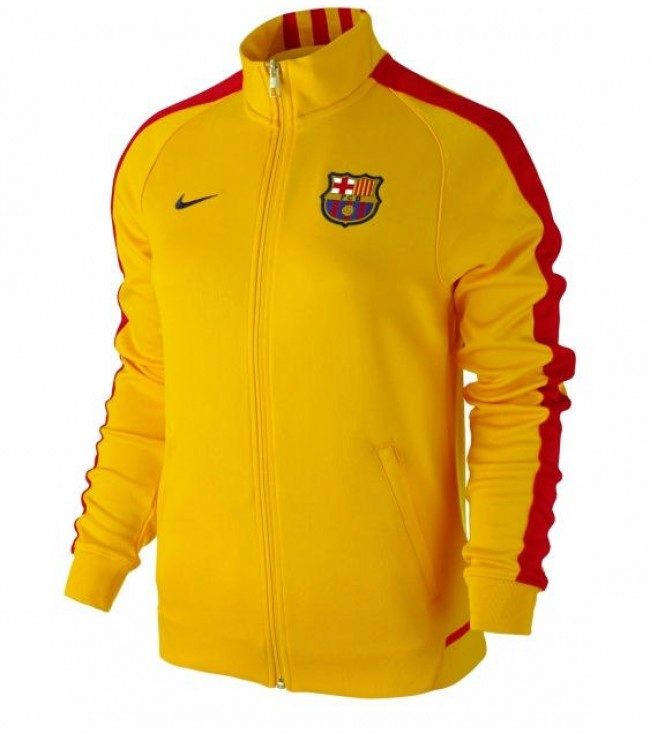 - Barcelona The olympic shirt is made in the traditional red and blue colors of the club, the FC Barcelona emblem is embroidered on the side of the jacket. Also there are mustard olympic sweatshirts, which is also present on the club logo.