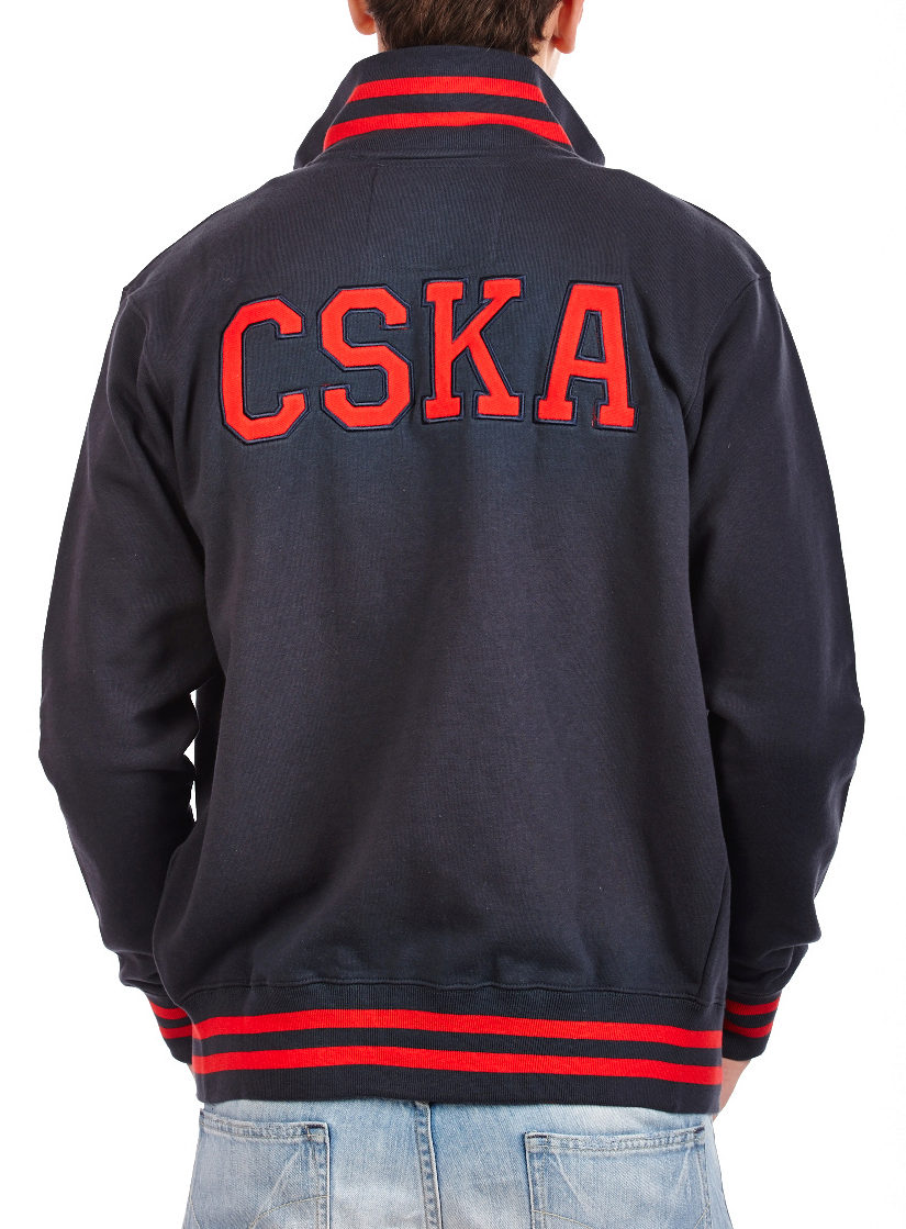 - CSK. Olimpike traditional dark blue with red stripes. The emblem of a football club is embroidered on the chest.