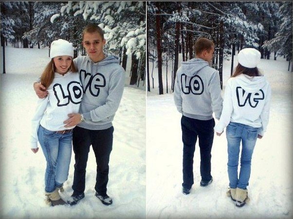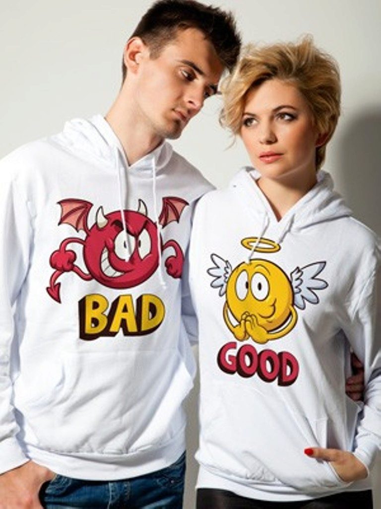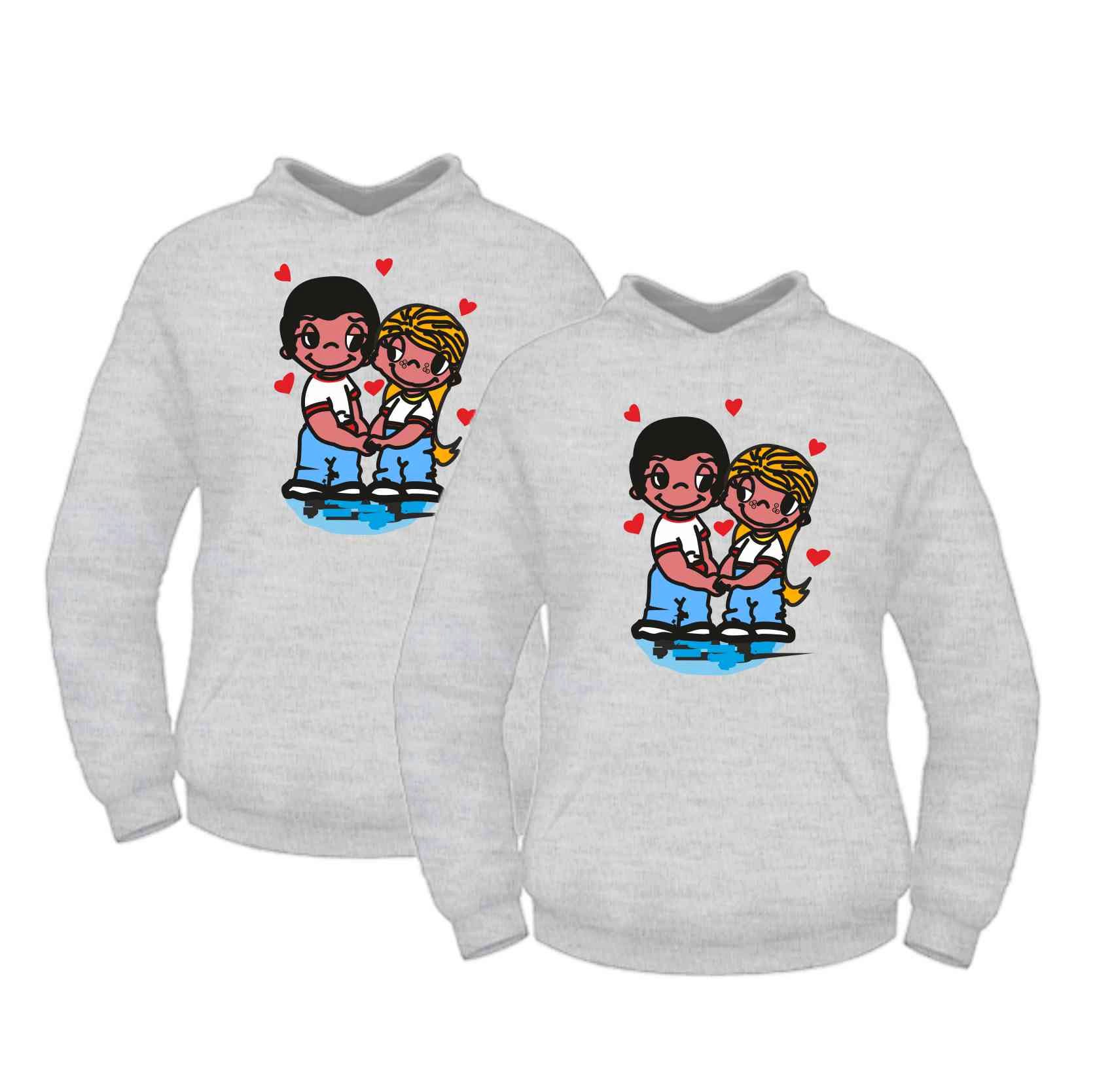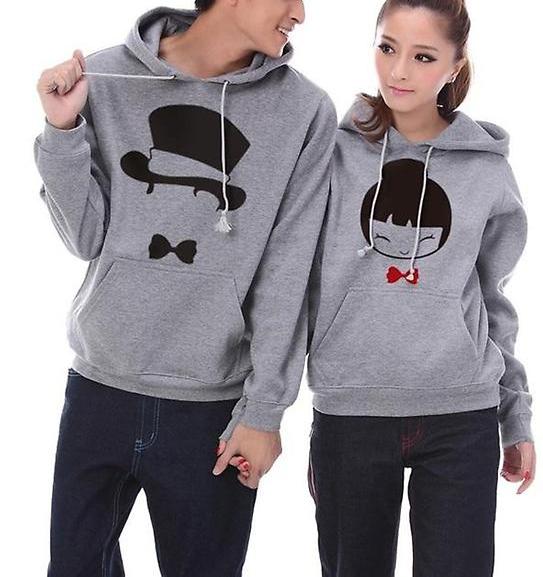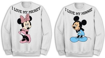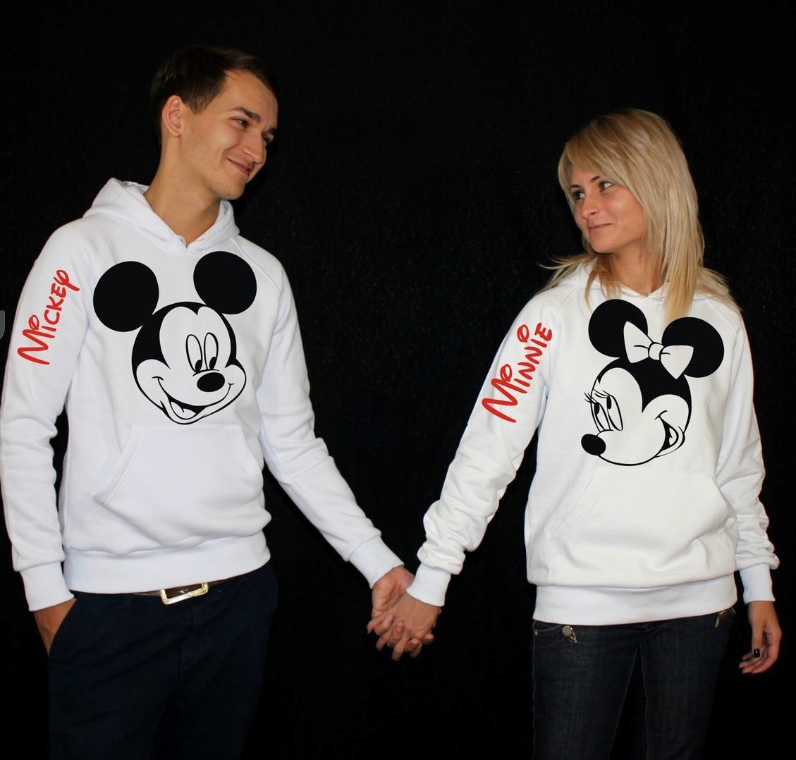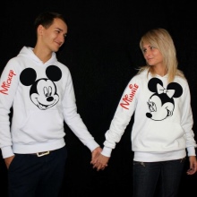 Interesting sweatshirts for a pair of unusual interesting pictures. Sometimes they carry some meaning and unite a couple. And sometimes images mean nothing. However, their identity expresses the compatibility of the guy and the girl.