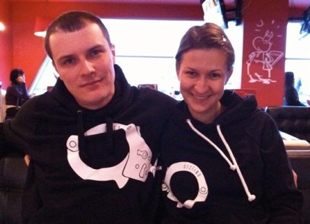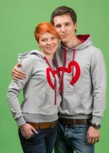In order to satisfy the preferences of couples in love, the designers developed unusual novelties, not forgetting to make them not only original, but also comfortable. This is a pair of sweatshirts.