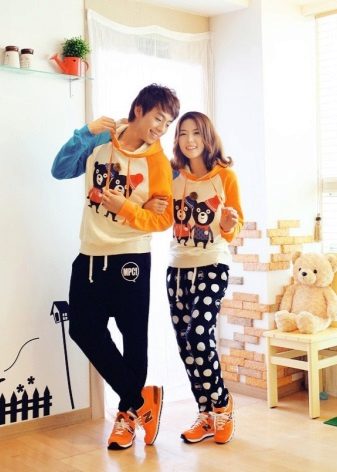 They express belonging to the same family and talk about the indivisibility of the couple. Sweatshirts with a surname and serial number are in great demand. Usually such kits are bought for the whole family.