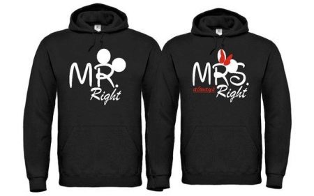 In addition to the usual inscriptions like "king" and "king's wife" or "husband" and "wife" hoodies with the surname are extremely popular.