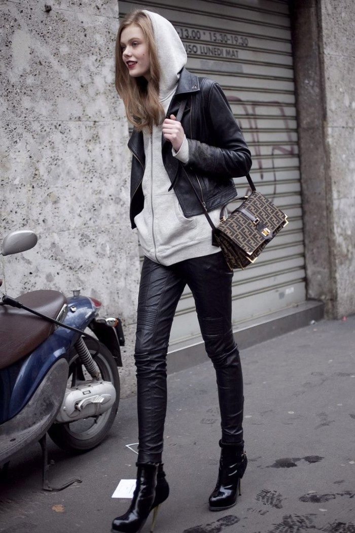 In modern fashion there are no restrictions, so you can safely wear a hoodie with your favorite everyday clothes.