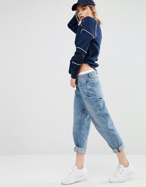 The most common combination is jeans, leggings or denim shorts. If you prefer the latter, the sweatshirt should be short enough. Otherwise, you may get the impression that you forgot to wear pants before leaving the house.