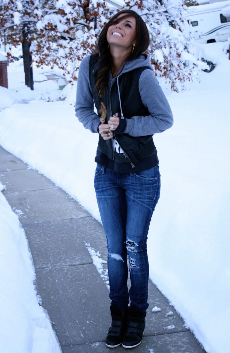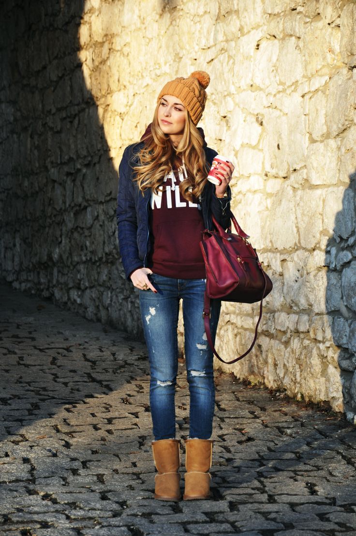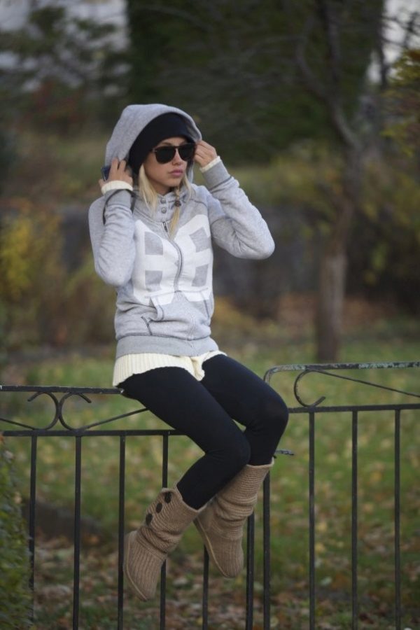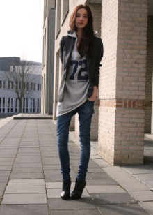 Modern young people simply love sweatshirts due to their convenience, practicality, variety of models and colors. Hoodies are very popular. Stylish looks tandem hoodie elongated cut with short ankle boots. Often, such an image of a girl is complemented with a knitted hat, baseball cap, gloves or a backpack bag.