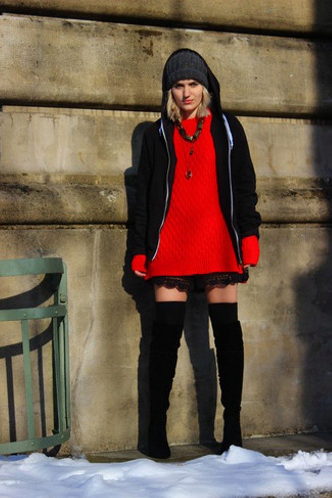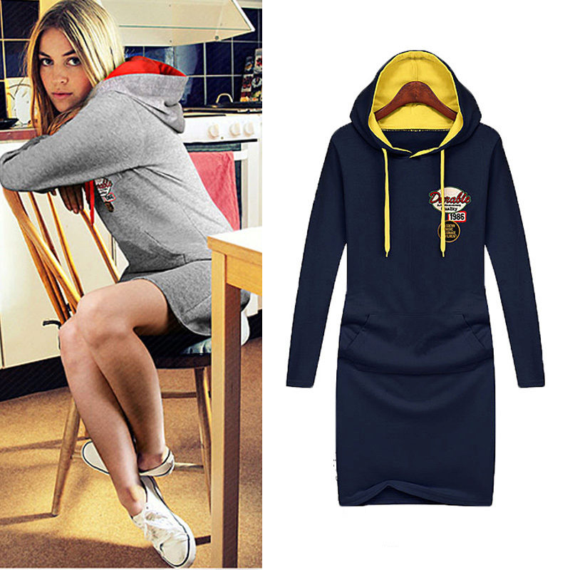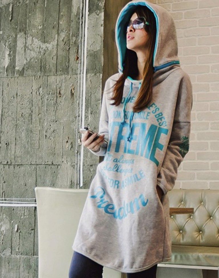 Spectacular hoody dresses look beautiful with black tights and high toe boots. They are distinguished by convenience and practicality. The colors may vary, but the black sweatshirt never goes out of style.