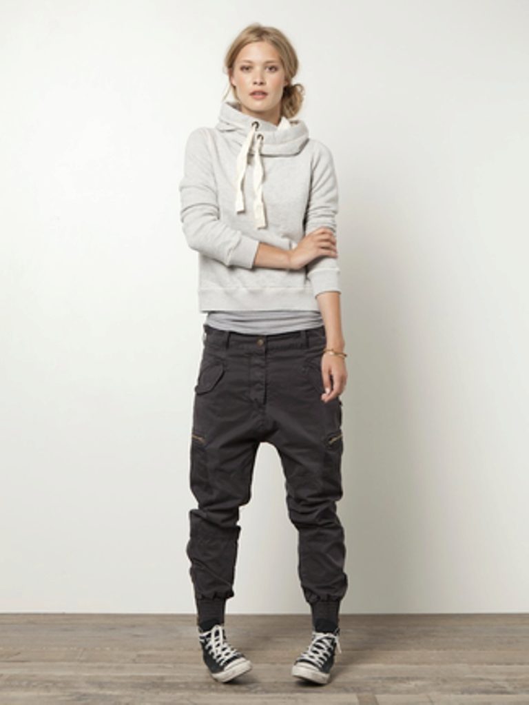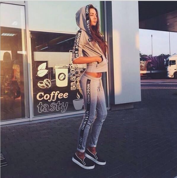 For a sporty look, you can purchase a ready-made suit that includes a sweatshirt and sports pants. Each item of clothing can be combined with other things. When choosing shoes should prefer sneakers or sneakers, but on shoes with heels it is better to refrain. Sweatshirts from the sets are simple and high wear resistance.