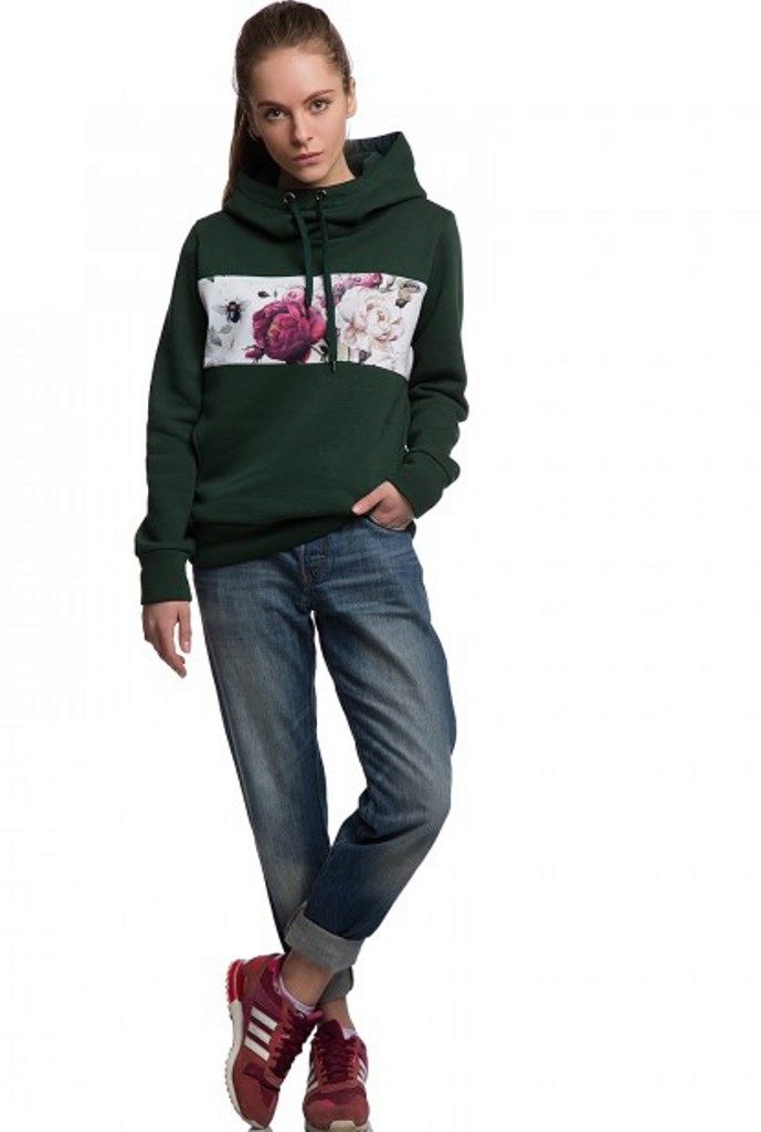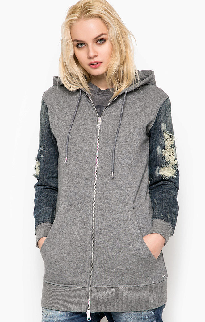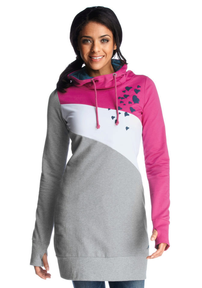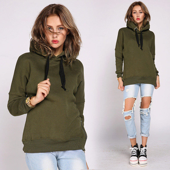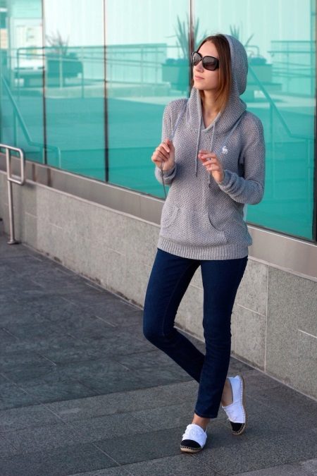 Female models of sweatshirts with a hood can be used not only to create a sporty style. They can be combined with any elements of the wardrobe.