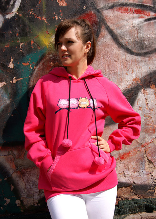 Young people prefer models with bright and cool drawings or inscriptions. Often on sweatshirts you can see images of characters from cartoons, advertising or popular computer games.