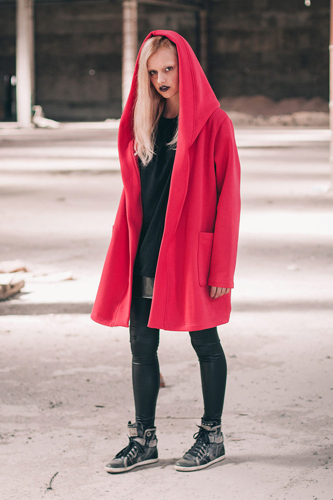 To create a mysterious and feminine image you should pay attention to the hoodie-mantle. The original cut is in great demand among young people. Sweatshirts-mantle presented monochrome models. Mostly black, white and red.