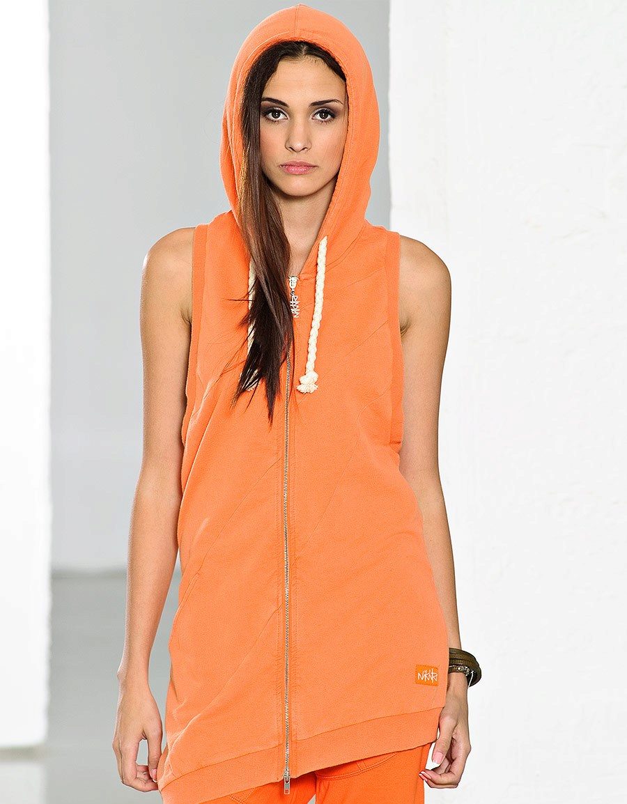 Models without sleeves, as a rule, are sewn of knitwear and are intended for the warm season. In such a sweatshirt you can go not only for training, but also for a walk.