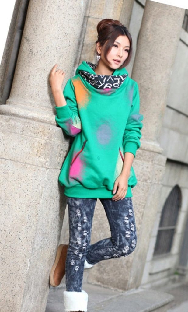 Designers are constantly inventing new styles. The model with a large hood looks spectacular and beautiful. Such a sweatshirt will be able to replace the autumn jacket. In it, you will always feel comfortable and warm, regardless of weather conditions.