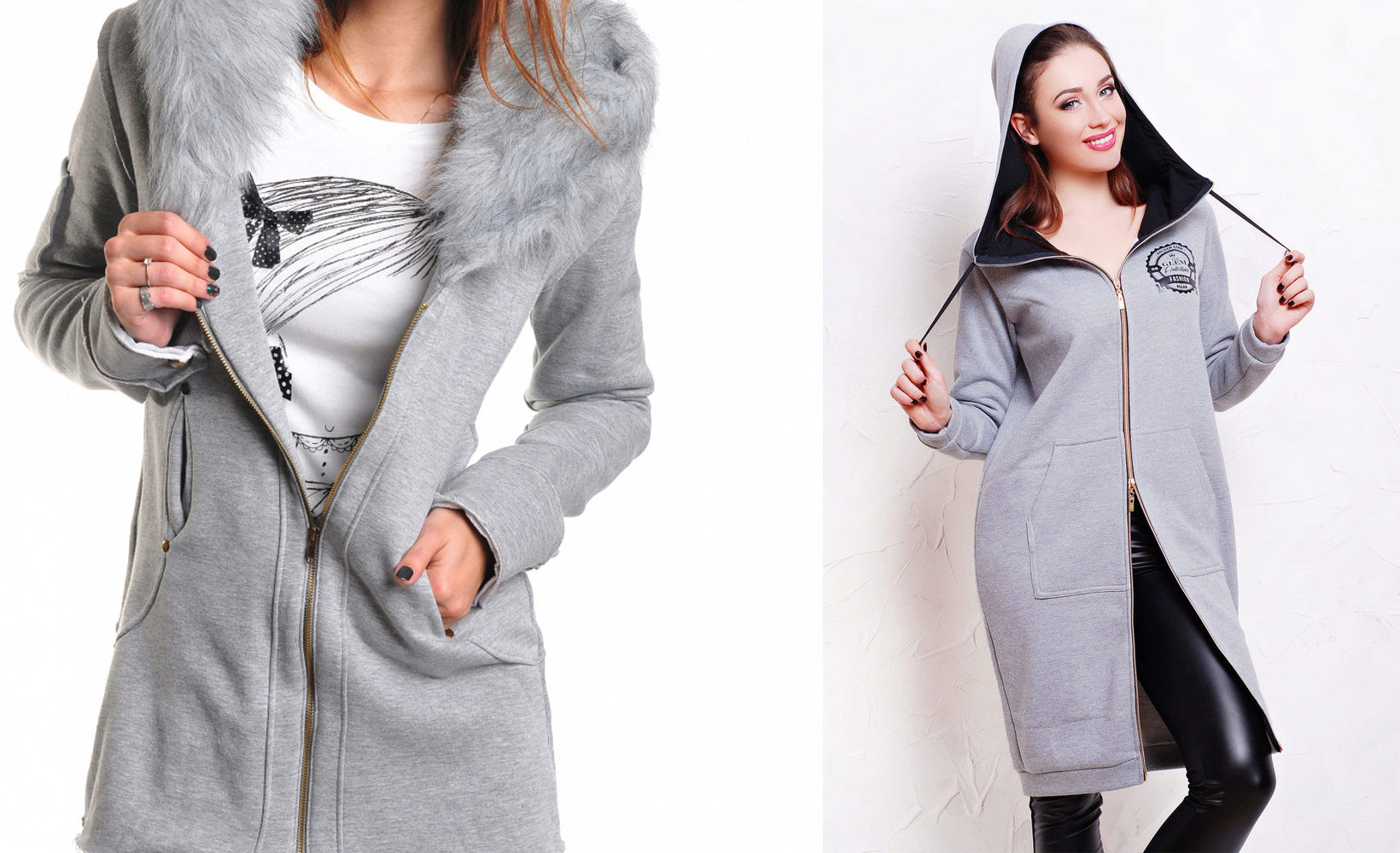 A very famous destination among young people is lux sport. Hoodies in this style often have a fur trim hood. For a decor various applications and an embroidery are used.