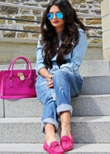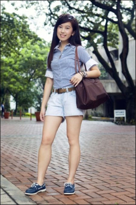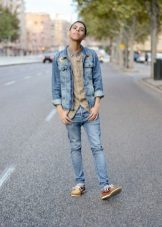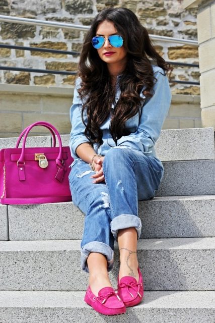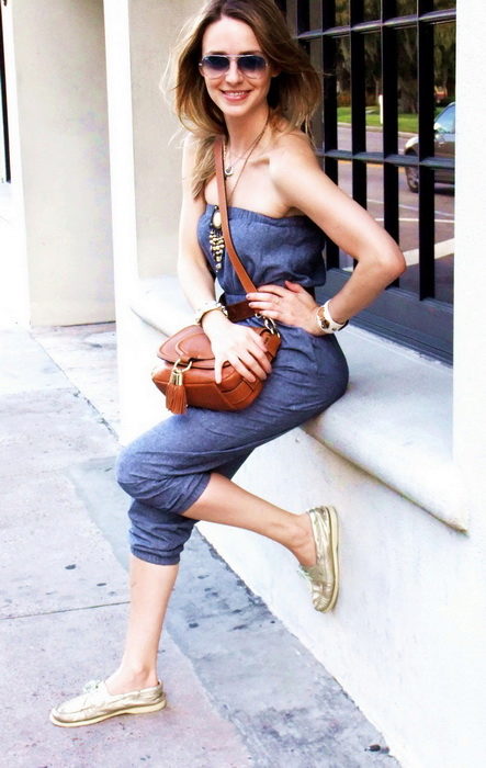 Jeans or denim shorts equally win-win for topsiders. With blue denim products in harmony shoes of different beige shades.