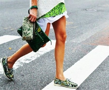 Women's topsiders surprise and delight the abundance of colors and materials. Fashionistas provided ample opportunities for combining topsiders with various wardrobe items. Ladies can combine stylish and comfortable shoes with skirts or even dresses. Lovers of free style does not interfere with the look at this shoe, it is in perfect harmony with the summer casual look.