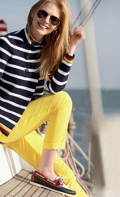 Boatmen will easily fit in casual, marine and sporty style. For example, they will look great with light pants or jeans. Look good models 7/8 long, which allow to emphasize elegant ankles. Wear them with a shirt, t-shirt or sweatshirt, not forgetting the stylish accessories.