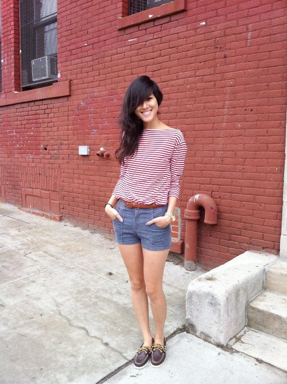 Boatmen will look good with a dress or a skirt in a sporty style. As a rule, these are tight-fitting knit models, the length of which is rarely below the knee. You can add such a look with a baseball cap, denim vest or jacket.