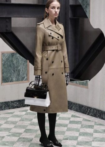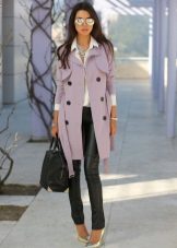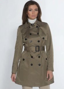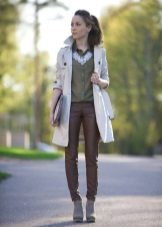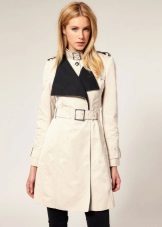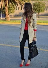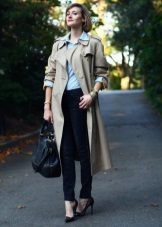 Since traditionally trench coats are sewn in discreet colors — sandy, beige, gray, less often black, this outerwear is ideal for a business style. The trench will make a wonderful pair with a business suit, a pencil skirt and a light blouse or shirt. Depending on your habits, it is permissible to wear heeled shoes and loafers. With trench good and high "army boots" on a rough sole, and boots with a thin stiletto or heel-glass.