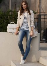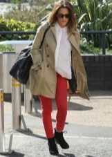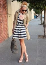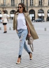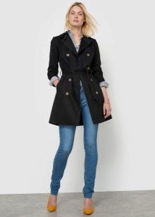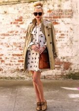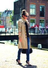 Trenchcoat is a basic classic in a women's wardrobe, and it allows combinations with various elements of clothing. The trench looks best in a casual style: it combines well with jeans of any model, sweaters and turtlenecks under the throat, skirts, dresses and sundresses. The universal length of the trench coat - just above the knee, gives the girl the opportunity to wear a skirt of any length - mini, midi or in the floor. However, in the case of an overly short trench coat, one should not fasten it, since it is considered a bad form to be outerwear that is longer than the hem of the skirt or dress.