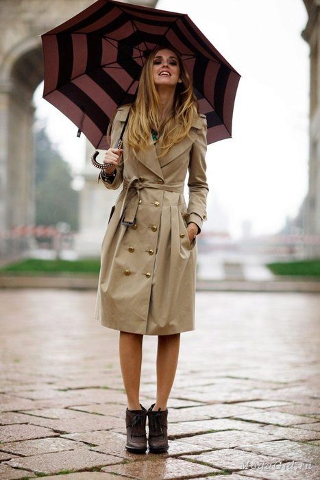 It is curious that the trench coat reached our days without any changes, and that the celebrities, that ordinary citizens who wear it, still look modern and very fashionable. Nowhere is gone and convenience. Thanks to the slot on the back, trench does not hold down movements, and the classic belt with a buckle allows you to fit it to any shape and protect yourself from wind or rain.