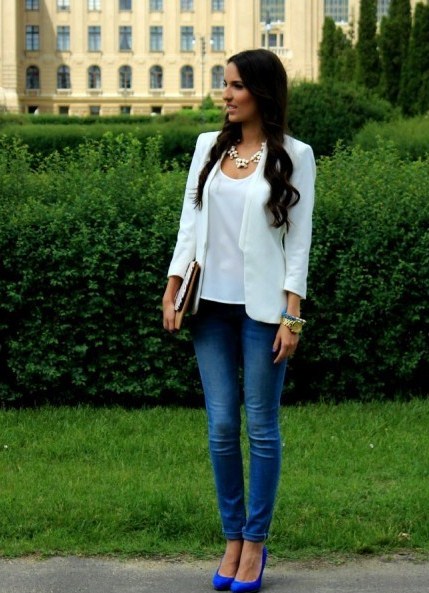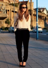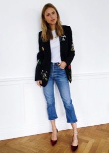 Extravagant and business trouser suits with stylish jackets and trousers of any cut look with velvet shoes not only effectively, but also sexy.