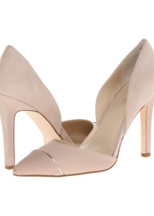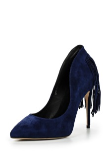 - pointed shoes for a dress of natural velor with an original fringe in the heel area and a thin heel (they are an excellent and sexy evening and festive option);