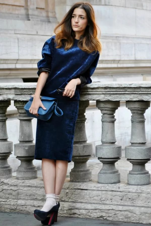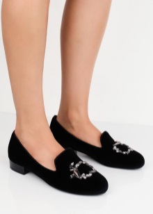 Velvet shoes from different brands look quite harmonious in tandem with jeans and skirts of various shades and blouses or shirts made of lightweight gliding fabrics.