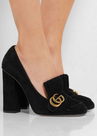 The most vivid and non-trivial models of women's shoes are produced by the world-famous brand Gucci. Velvet shoes from this world-famous brand are supplemented with a scattering of Swarovski crystals, as well as unusual metallized inserts in the form of spikes, rivets, large and small stones of a contrasting color.