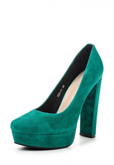 - green, black, blue and red shoes from natural suede on a high heel and on a fairly high platform;