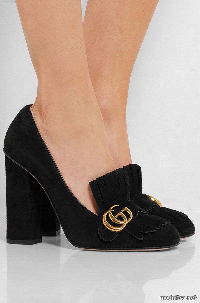 - The world famous brand Gucci, which pleases fashionistas with original and catchy shoes with metallic bright inserts.