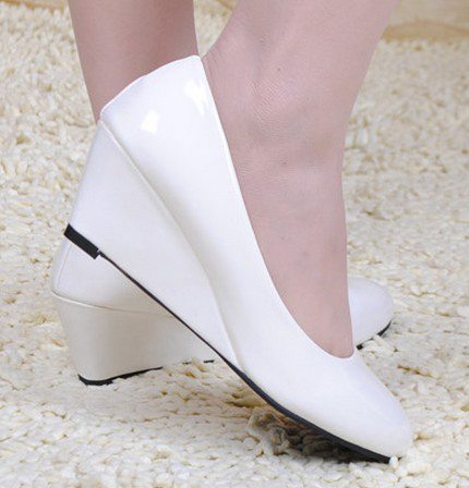 An alternative and incredibly convenient option to replace the heel stands wedge. Women have long appreciated the beauty and comfort of such shoes. White wedge leather shoes can be worn all day.