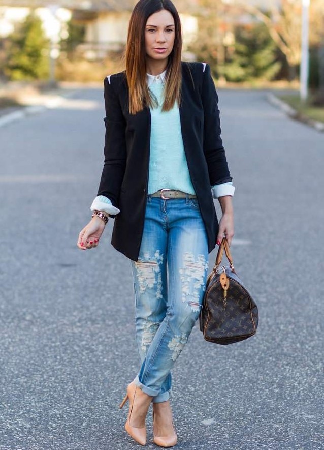 Skinny jeans in casual style will look great in tandem with these shoes. To give the image a greater femininity, it is necessary to turn up the trouser legs, thereby exposing the ankle.