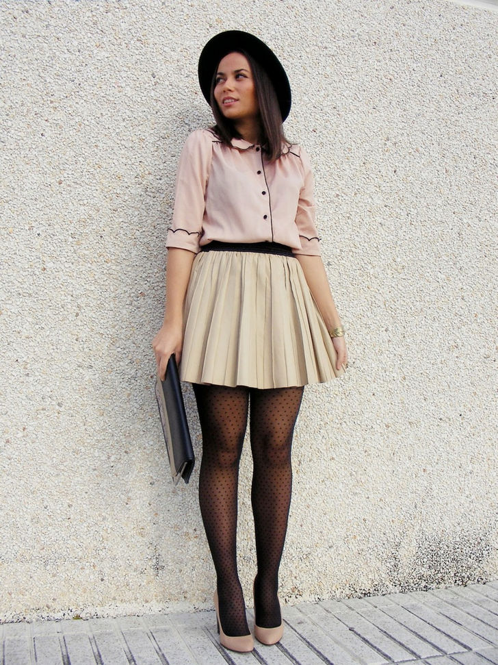 The most stylish addition to beige patent leather shoes with a steady heel are considered to be wardrobe items that fit like 70s.