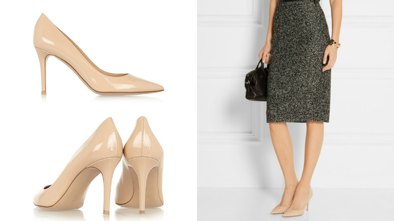 Women who want to have a universal pair of shoes in their wardrobe should take a look at beige-colored lacquered pumps.