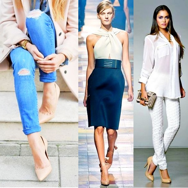 Beige pumps shoes are versatile and can be combined with almost any clothing. Consider several options for current kits.