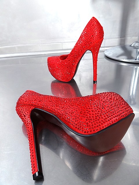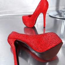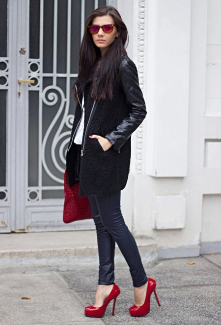 A red dress or trouser suit will be perfectly combined with shoes of silver or gold color, with blue or green metallic, shiny black models. You can get quite unusual combinations, experimenting with different colors of shoes.