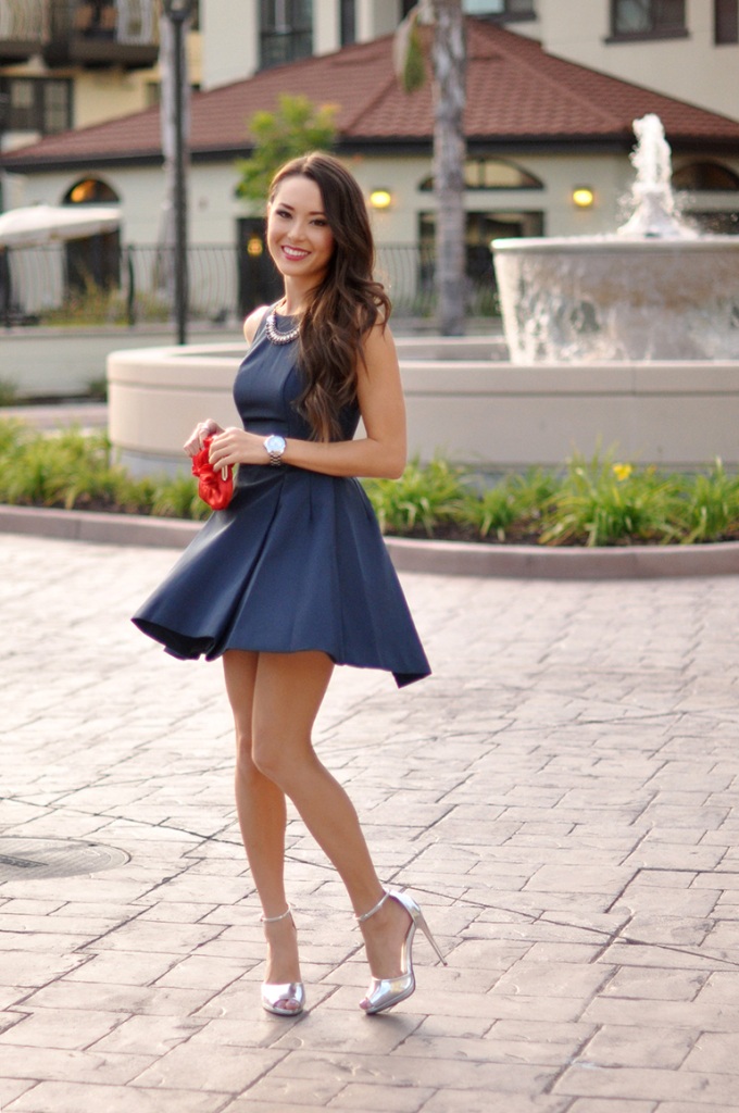 Blue clothes will look equally good with silver and gold shoes. This is a great tandem for everyday wear, dating and festive images.