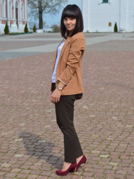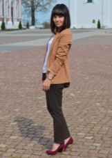 In addition, bright colors and more restrained, delicate shades are perfect for beige shoes: light lemon, light peach, light menthol, light lilac and light blue. Beautiful combinations can be made with darker trousers, for example, blue, maroon and sometimes even black.