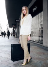 Beige shoes are perfect even for beige pants, even if the shades will match the tone to match. In addition, fit sandy pants, dark and light brown, cream and champagne.