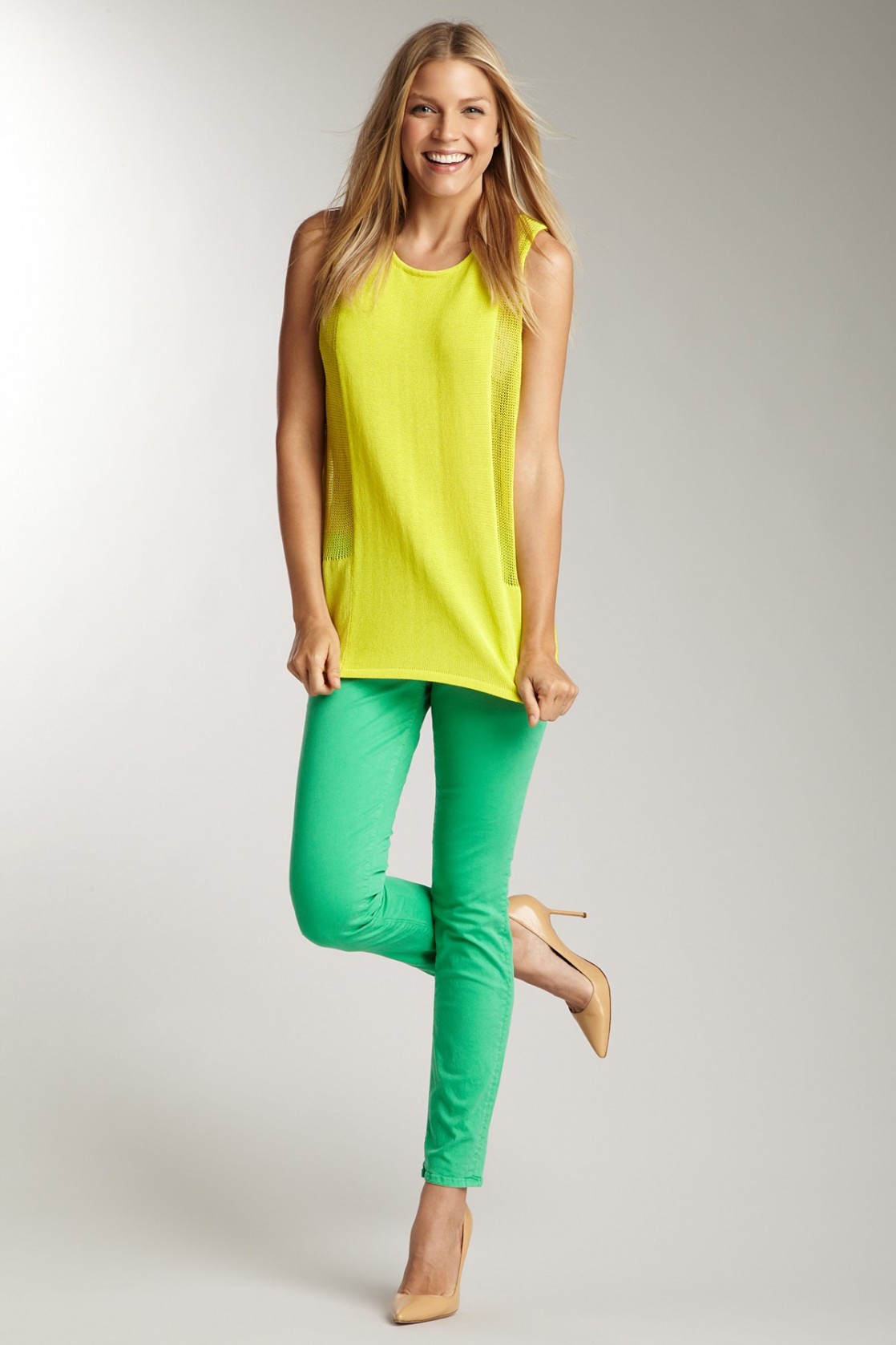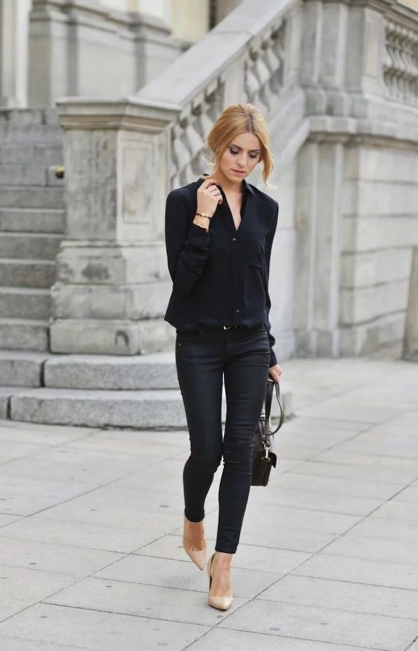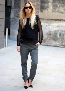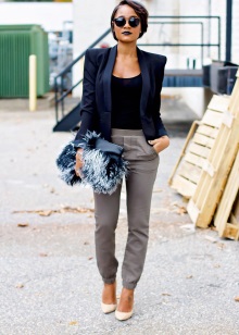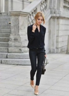 - And, finally, tight pants are a truly universal thing that blends perfectly with any model of shoes. Sophisticated pumps, shoes with a square or round toe, a stiletto or thick heel, ballet flats, sabots and even sandals - tight pants are perfect for any model of these.