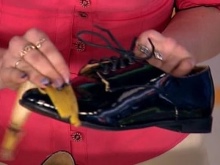 Clean lacquer shoes with special means or oil. To do this, you can take glycerin, castor oil, vaseline. To remove dirt and dust using soft wipes from the flannel. Brush, hard fabric, can scratch the surface. When heavily soiled, shoes are washed with soap and water. Dry gently with a napkin, then polish with velvet.