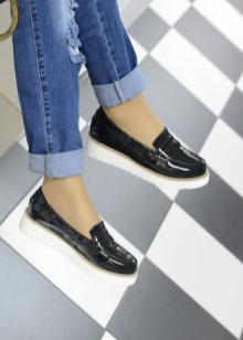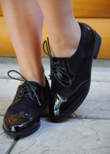 If until recently representatives of lacquer black shoes for women were of the same type of shoes, now, thanks to the efforts of designers, the choice is impressive: with a pointed toe, a blunt toe, high heels, high heels, low heels, without heels, with a strap, ballet shoes , loafers, boots, moccasins, laputens.