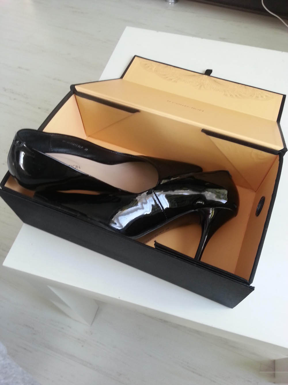 Store lacquer shoes in a box, wrapping each shoe in soft beforehand. clean paper to avoid contact with varnish.